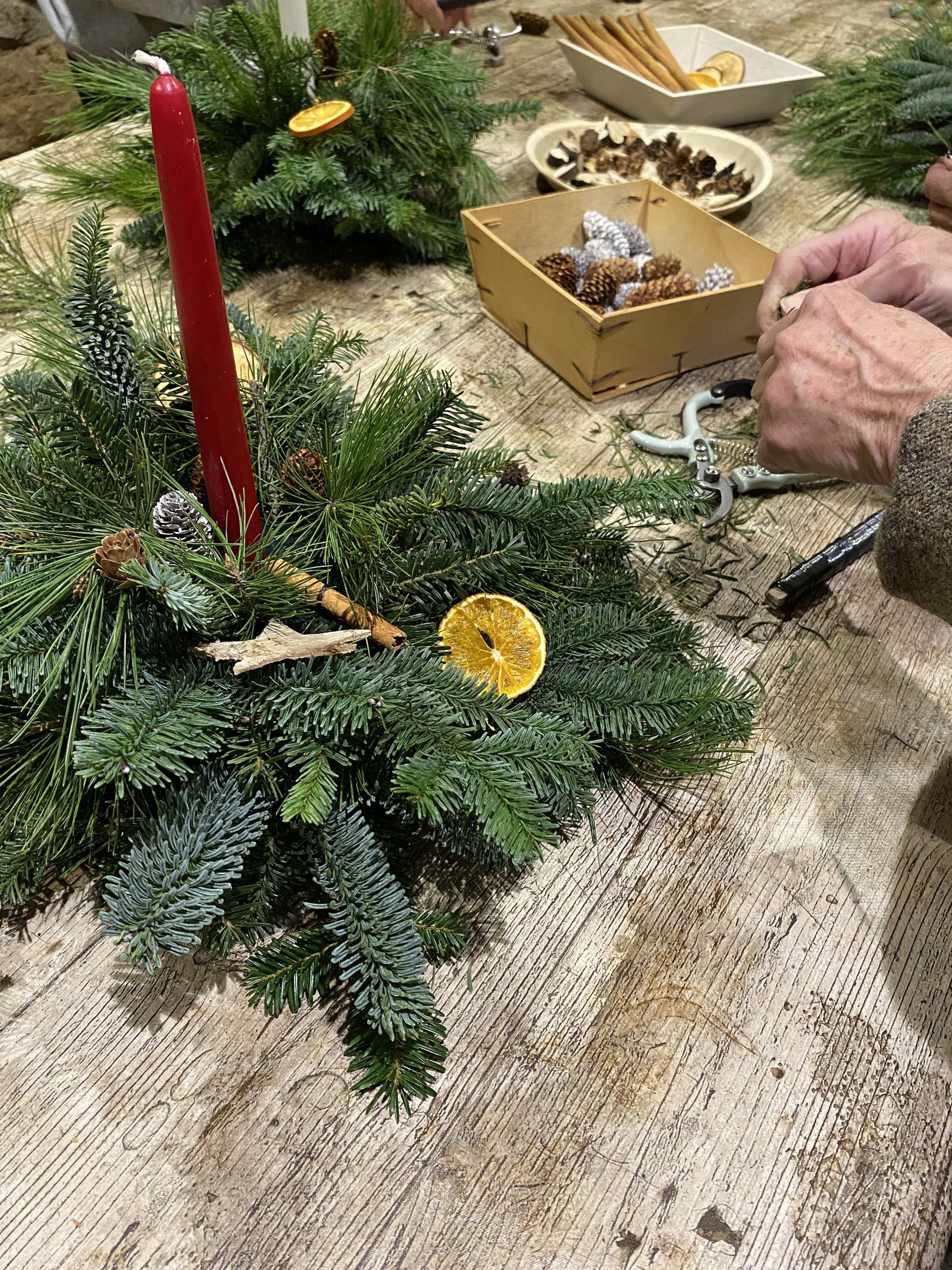 En aquest taller aprendràs a combinar branques naturals d'avet i eucaliptus , espelmes, pinyes, fruites seques i petits detalls decoratius per dissenyar una peça única que omplirà la taula d'elegància i calidesa.