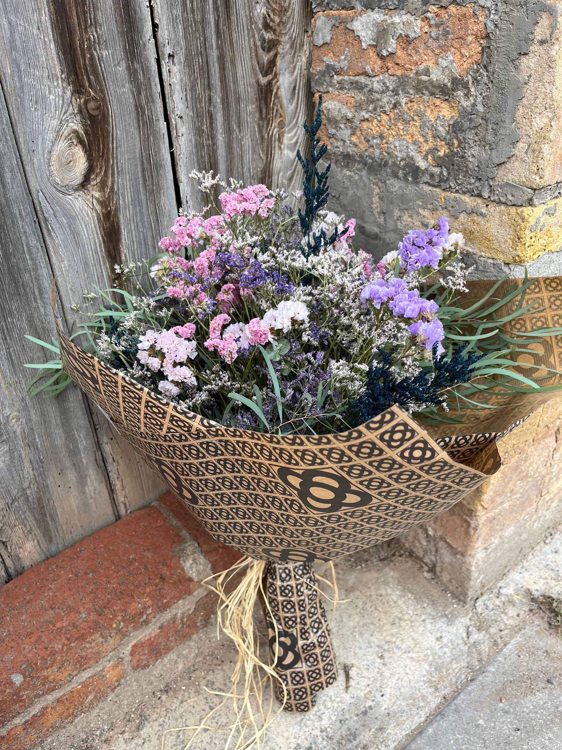 Un ramo lleno de alegría y color, elaborado con statice seco en tonos variados que aportan frescura y vitalidad a cualquier espacio.