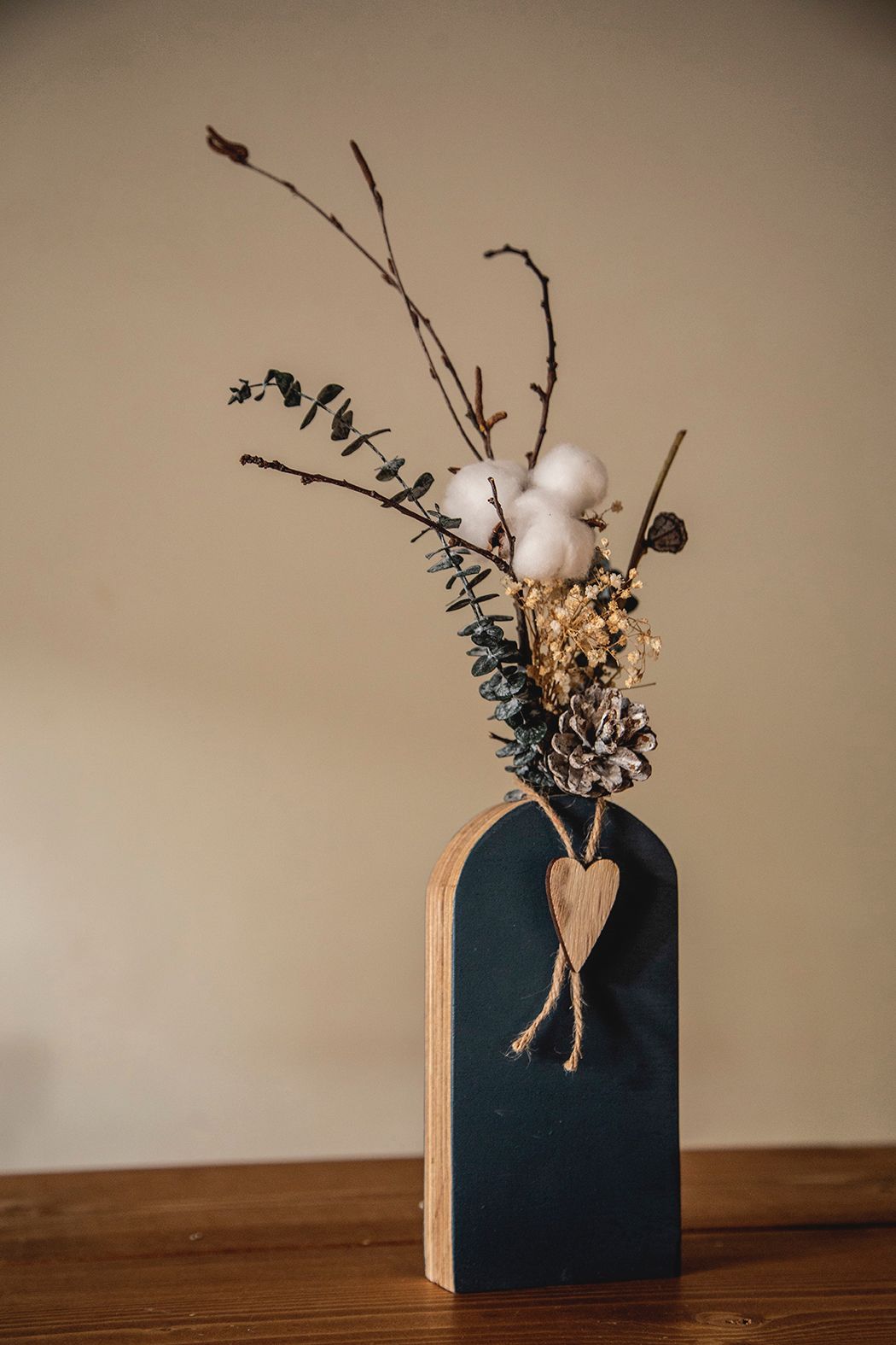 La composición de flor preservada con flor de algodón y eucaliptus, ideal para dar un toque cálido, natural y duradero a cualquier estancia, sin necesidad de mantenimiento.