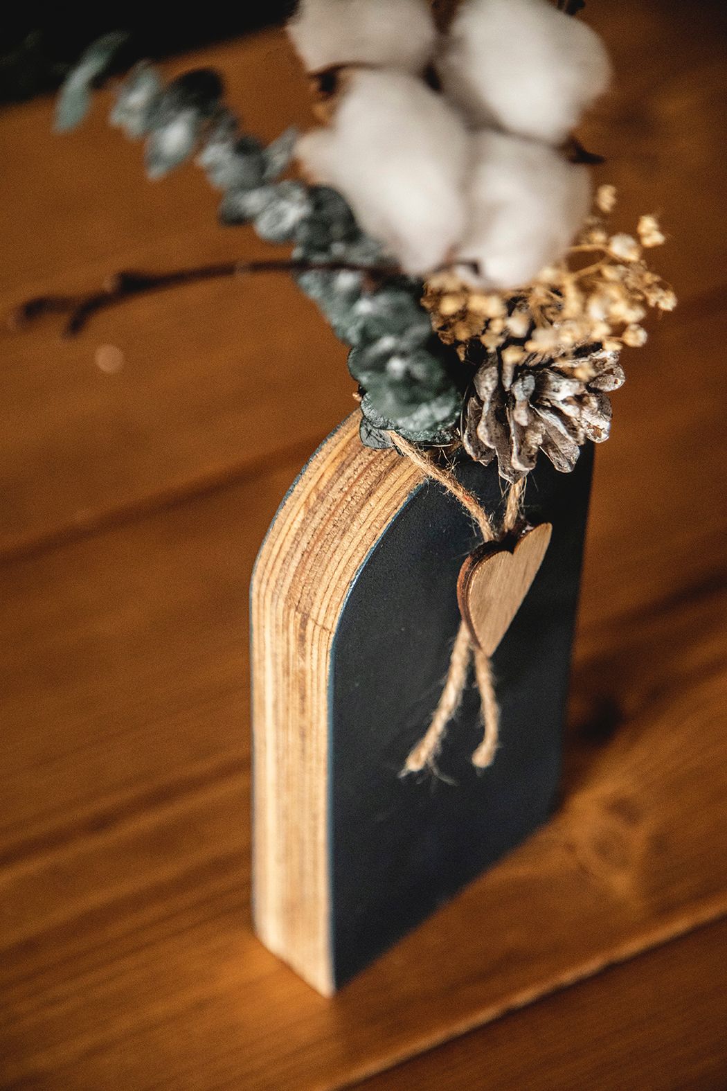 Florero Azul Profundo pieza realizada en pino contrachapado y pintada con un elegante tono azul profundo mediante pintura Rustoleum, que aporta un acabado uniforme, resistente y de gran presencia decorativa.