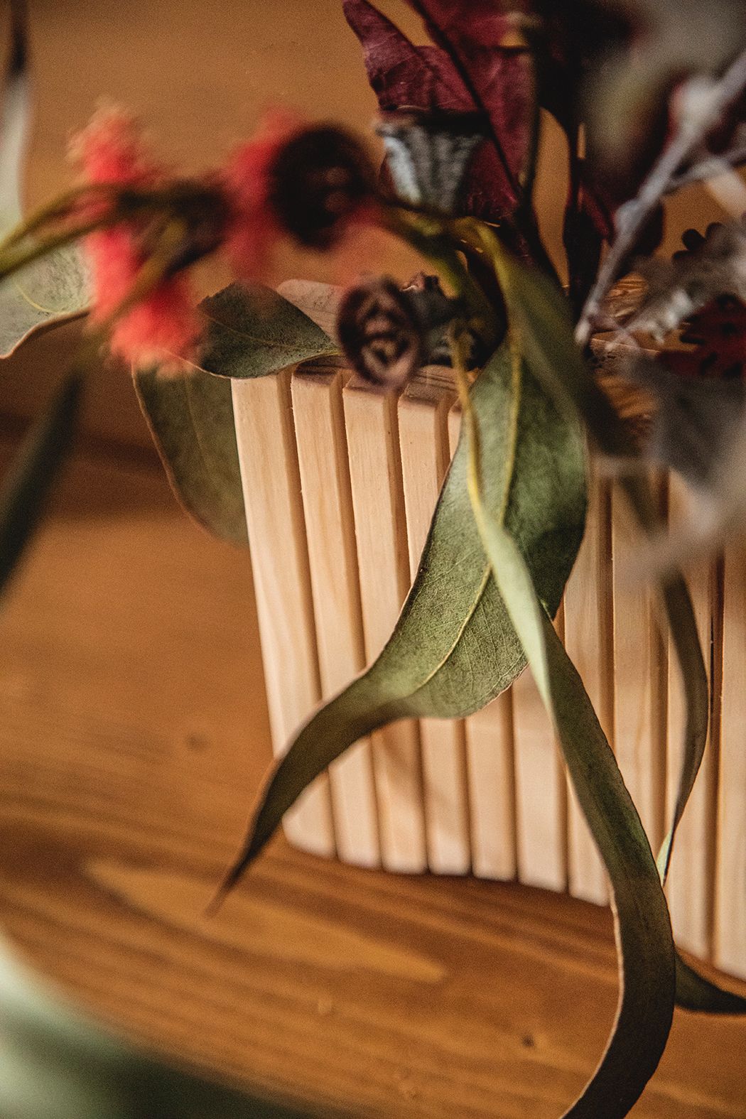 Florero Natural: una pieza que celebra la belleza de lo sencillo. Elaborado a partir de abeto tricapa y acabado en mate natural, este florero destaca por su aspecto cálido, orgánico y auténtico. Las rayas aportan carácter y una presencia serena que encaja perfectamente en cualquier estilo de decoración.